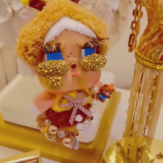This charming doll is a handcrafted piece of art, inspired by the Crybaby/Pop Mart aesthetic. Beautifully adorned with sparkling rhinestones and detailed lashes, each doll is made with love and care — and no two are ever the same.