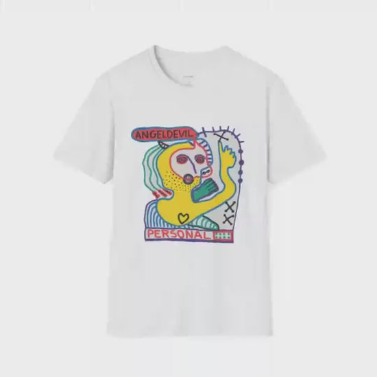 Unleash the chaos and charm of duality. This surreal t-shirt features a unique hand-drawn design blending angelic purity with devilish rebellion. The yellow hybrid creature - part skull, part spirit, part cactus - dances with color and contradiction. It's not just a graphic, it's a persona.