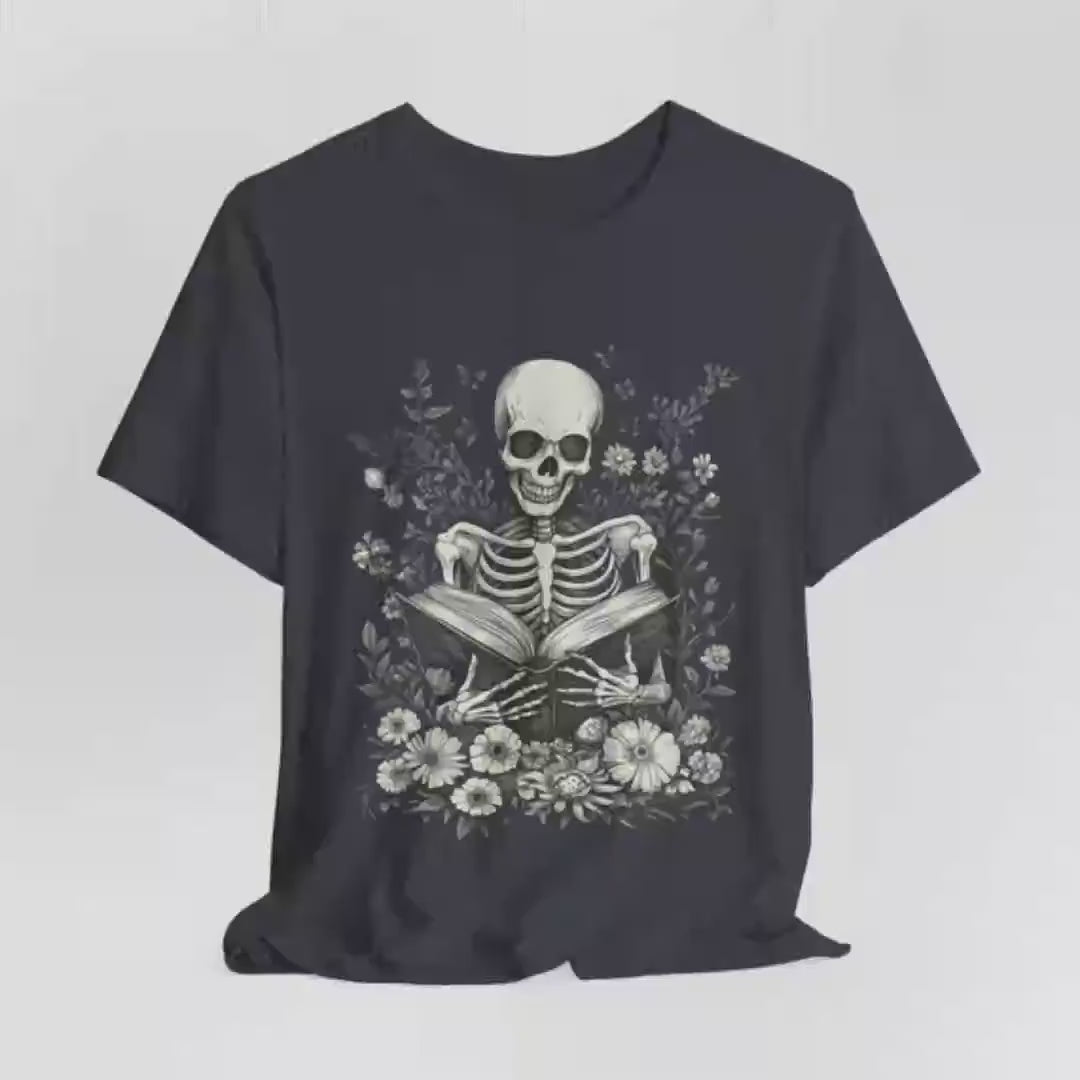 This Skeleton Reading Book T-Shirt is the perfect gift for gothic dark academia lovers, bookworms, and witchy souls. A spooky yet stylish tee for Halloween, cozy reading nights, or everyday alternative fashion.